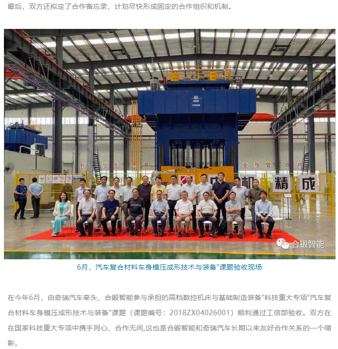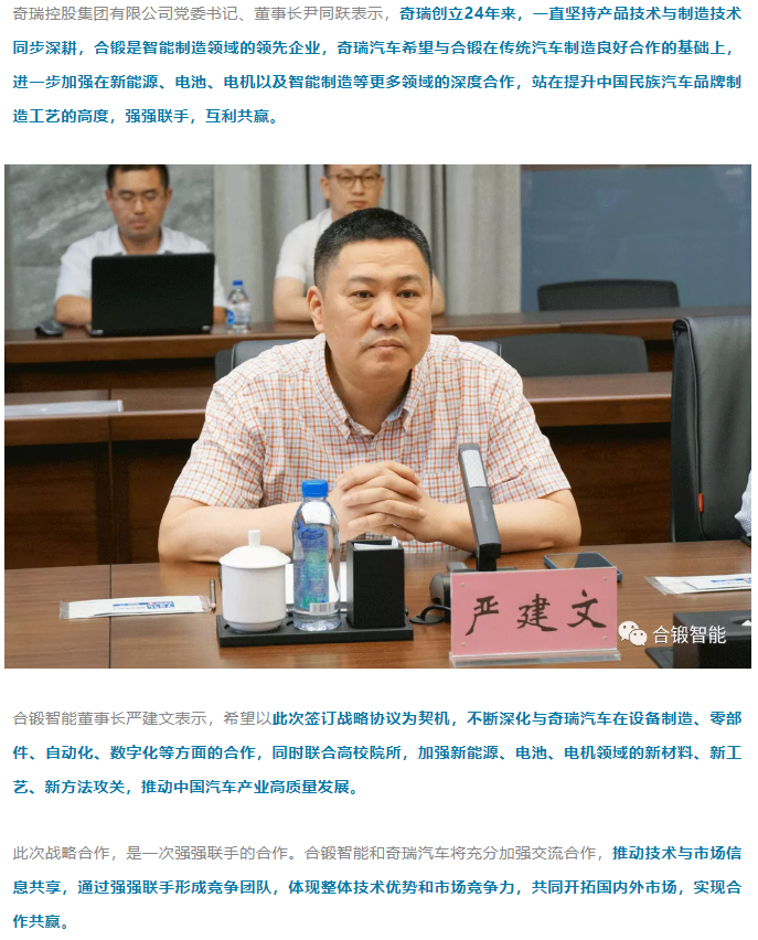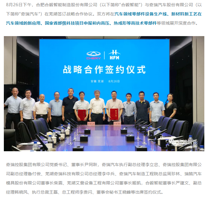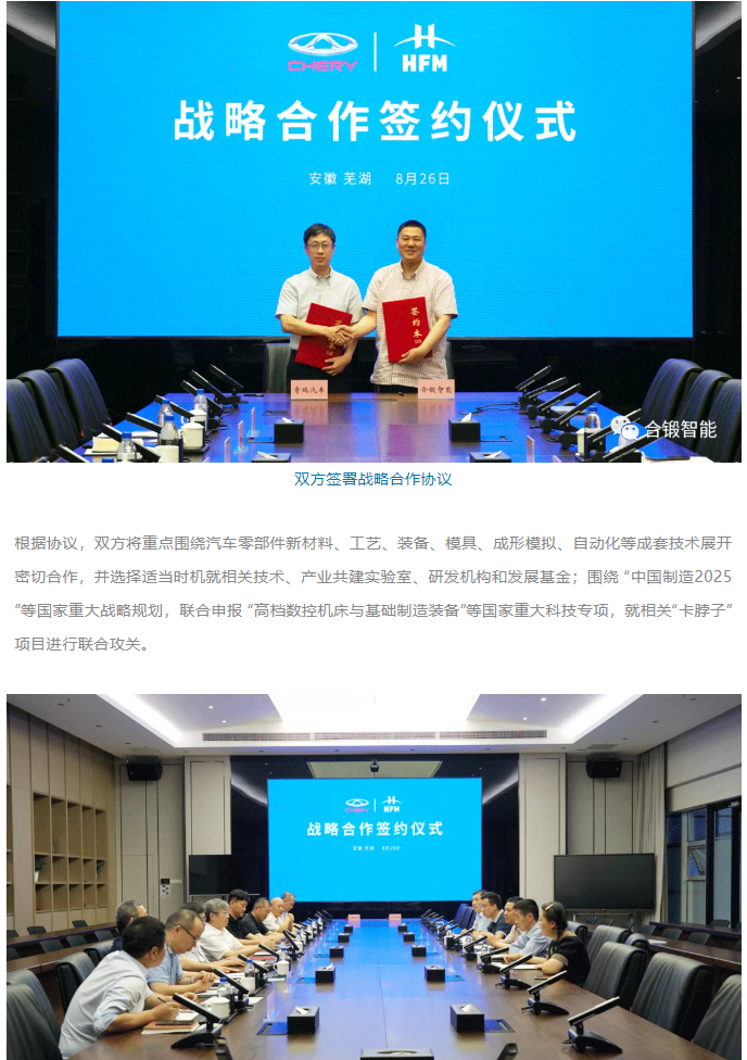 强强联手 合锻智能与奇瑞汽车签订战略合作协议