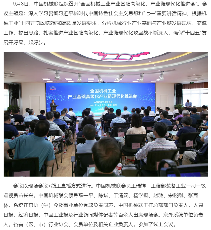 全国机械工业产业基础高级化、产业链现代化推进会在京召开