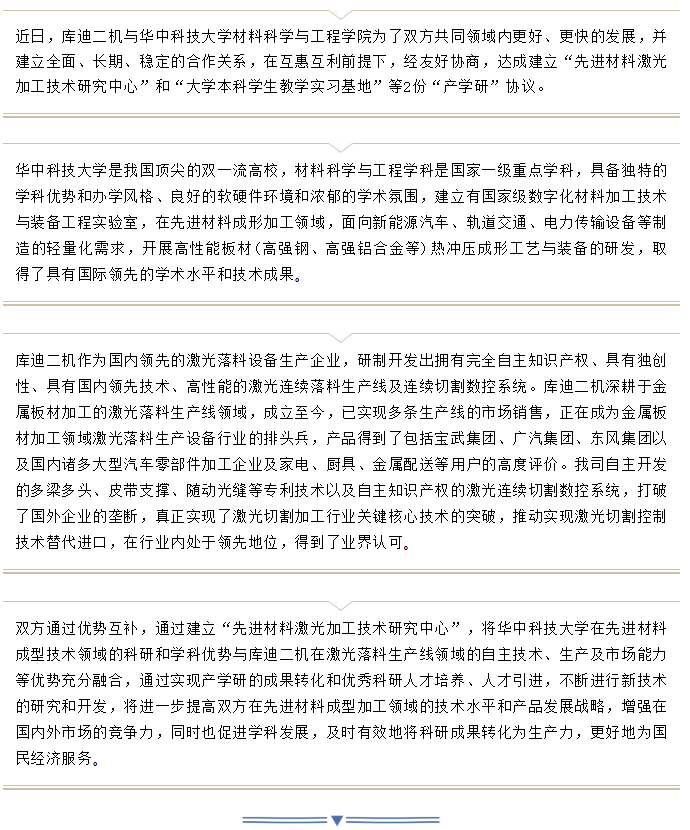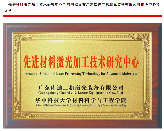 库迪二机与华中科技大学共建先进材料激光加工技术研究中心