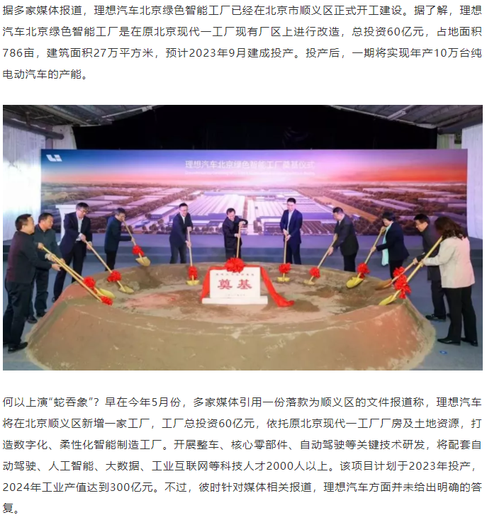 北现工厂被理想汽车“吞并”,昨日正式开工!
