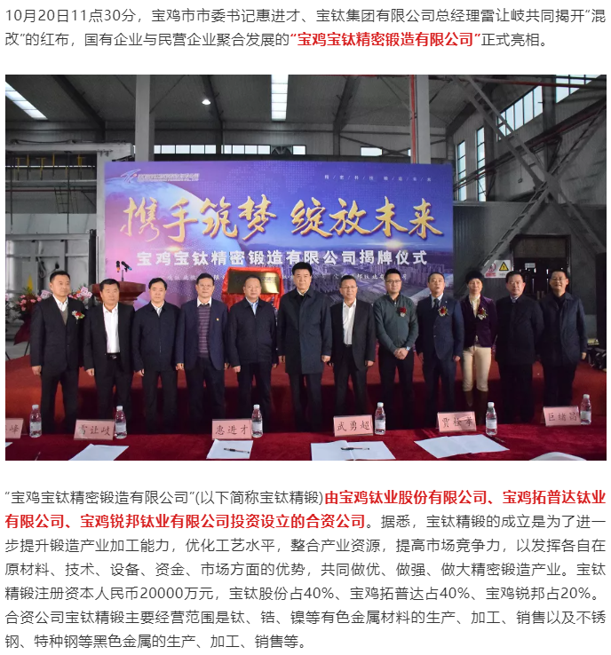 揭牌成立!宝鸡宝钛精密锻造有限公司