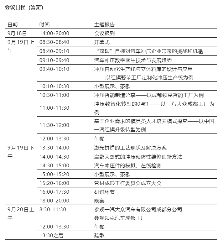 成都,除了“天府之国”的美誉之外,还有另外一个称号,叫做“中国汽车之城”。这让本以为成都只有熊猫、川剧、美女、美食和美风景的人都感到惊讶,什么时候这个软实力突出的人文城市,一下子在重工业也有了这么意想不到的收获,成为川渝地区名副其实的汽车之城,今天就让小编带领各位读者一起走进成都一汽大众的车间,感受一下金属成形的魅力,感受一下成都带来的震撼吧! 一汽-大众成都分公司冲压车间建设项目分三期完成,占地面64,791,项目总投资23.5亿元,一期工程于2010年峻工,二、三期工程分别于2011年7月、10月竣工,车间现有员工300余人,拥有310、320、330、340、350五条自动化生产线和一条开卷落料线。 冲压车间的5条自动化生产线,其中4条来自全球最大的知名压机企业--德国舒勒集团,1条来自国内最好的压机企业—济南第二机床厂。高达8100吨的大型高速冲压线,长达6序的生产线结构,为捷达品牌汽车模具提供了最优的工艺布局, KUKA高速拆垛机器人,63吨的德国DEMAG天车等世界首屈一指的先进设备,传承德国大众的科学管理体系和优秀的人才储备,我们通过最优良的装备和最严谨的过程质量控制,确保了车身钣金零件的质量。 捷达品牌的质量标准,与一汽-大众奥迪车型和大众车型的标准完全一致。我们对生产出来的零件100%进行表面质量检查,对常见的钣金不规则缺陷起伏量都控制在0.01mm以内,我们不仅仅是在造车,而是在创造一件艺术品。 冲压件的尺寸精度要求非常高,因为它可能会影响车身匹配的平度、间隙, 进而影响整车的风阻、风噪、强度和美观。冲压件的尺寸精度通常要求在±0.5㎜以内,重点区域如激光焊区域要求在±0.2㎜以内。每批次生产的零件都将通过三坐标测量仪进行尺寸检查,确保冲压件的尺寸严丝合缝。 钢板:成都冲压车间使用的钢板主要来自全球领先的宝钢、塔高、阿赛洛和首钢集团。除了常规的镀锌钢板,我们还采用高强度钢板,激光拼焊板等,保证了车身强度、轻量化和防腐的要求。 自动传输:工序之间的自动化传输采用SpeedBar高速传输系统,利用电子凸轮开关控制,12个伺服电机控制高速臂,操纵机械手精准地做出摆动、倾斜、横移等高难度动作,实现平稳、精准、高速地自动化传输,极大提高了生产效率。 清洗:冲压车间全自动压机线采用德国舒勒公司板料清洗机,保证生产的冲压件一尘不染;同时还采用了德国Eckhardt公司的涂油机,可实现拉延油喷涂量和油膜厚度的可调节,确保零件成型的稳定性,使每一个冲压件表面质量和尺寸精度都是一致的。 模具:捷达品牌90%以上的零件采用五序及以上工艺布置,以及一模多件、内外覆盖件同模等模具工艺,严格按照德国大众模具最高等级Ⅲ标准设计制造,模具部件均采用DADCO、费斯托,三协,奥钢联等全球知名品牌产品,保证了冲压件的质量和模具的安全可靠,捷达品牌模具均经历了超过200万次冲程的考验。 有专家指出,未来十年甚至更长时间,数字化和低碳化是社会发展最重大的两大趋势,它们是相互驱动、相互促进的统一体,是推动人类社会绿色发展的双引擎。为推动冲压生产和工艺进步,促进汽车及零部件企业高质量发展,由新利18全网站手机下载 主办的“第十五届中国汽车冲压会议——智能与低碳高峰论坛”暨“管材成形工作委员会成立大会”将于2022年9月18日至20日在四川省成都市隆重举行。届时将有来自成都一汽大众的两位业内专家来分享:“冲压数智化转型的0与1——以一汽大众成都工厂为例”和“扁鹊大哥式的冲压预防性维修创新方法”这两场精彩报告,详细介绍在未来冲压数智化和冲压预防性维护创新在生产实践当中的应用。
