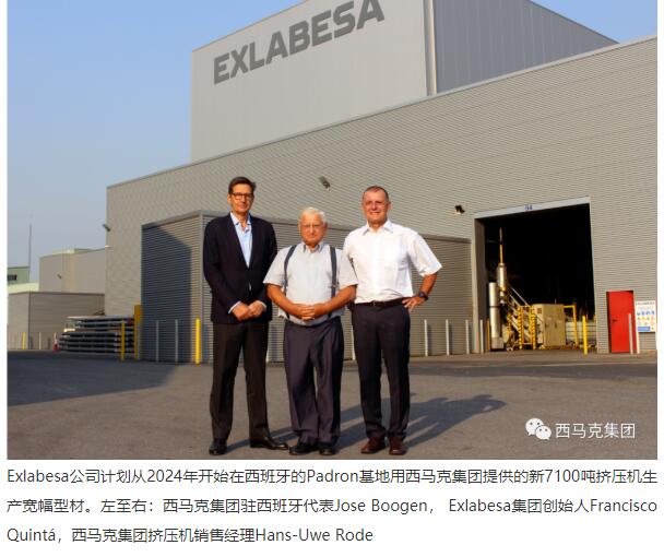 西马克集团将为西班牙Exlabess集团提供一台大型挤压机,是迄今为止欧洲挤压吨位最大的节能型铝材挤压机之一 挤压力7100吨,是欧洲最大的铝挤压机之一 铝型材的广泛使用,降低了交通运输导致的碳排放 Exlabesa集团的铝材产量实现翻倍,产品技术水平得以极大提高 Exlabesa集团是专业生产挤压铝型材的跨国公司,最近与西马克集团签订了一份合同,为其提供一台71MN的前装料式短行程挤压机。Exlabesa集团拥有9个生产基地,通过这次新的采购,生产线规模将扩充到27条,而且他们拥有的西马克高端挤压机数量也达到5台。这台新挤压机将安装在该公司位于西班牙的Padron基地,将是伊比利亚半岛最大的挤压机。该设备计划于2024年初投产。 “更轻,同时结构设计更安全、油耗更低、碳排放更少,从而实现可持续的交通运输,这促使当今社会越来越多地采用高强度铝型材。我们有了这台大型挤压机,我们打算将大型型材的产量提高一倍,并确保设备运转率。此外,我们将能够提供以前无法提供的新断面和扁宽型材,并加强我们作为欧洲铝材市场领导者的地位,”Exlabesa集团创始人Francisco Quintá说道。 新挤压机将主要用于为日益增长的电动车市场生产型材。更重要的是,该公司还计划生产用于卡车上部结构的挤压型材,幅宽可达620毫米,以及用于铁路车厢箱体型材。不仅如此,新的投资将使Exlabesa集团建筑系统部门能够生产独特的建筑结构型材,为要求最苛刻的建筑项目生产幕墙料。 这台前装料式挤压机将采用西马克集团的最新设计结构。新挤压机的控制理念与已经提供的挤压机相同。由于采用了EcoDraulic绿色节能液压概念,可以实现高达10%的能源消耗降低。该系统具有智能的、根据实际需要的主泵启动/停止控制功能,在挤压过程中关闭所有不需要的液压泵。 “能够为Exlabesa公司的扩建项目添砖加瓦,我们感到由衷地自豪。通过持续使用优化的挤压技术,并不断扩大产品花色品种,再加上这台迄今为止西班牙最大的挤压机,Exlabesa集团如虎添翼,正在成长为欧洲领先的挤压机工厂之一。”西马克集团挤压机销售经理Hans-Uwe Rode热情地说道。