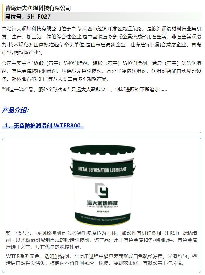 展商推介|远大润烯参展2023年金属成形展,展位号5H-F027