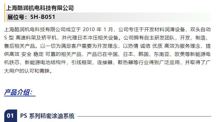 展商推介|酷润机电-专注于开发材料润滑设备、双头自动 S 型高速料架及矫平机