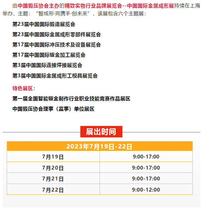 2023中国国际金属成形展开幕在即!这份参观指南请收好→