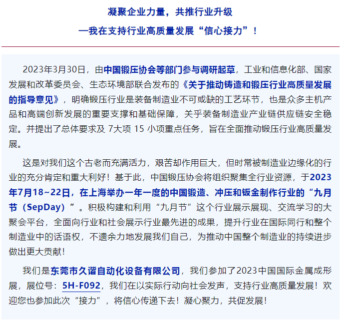 信心接力|久谐自动化:我在支持行业高质量发展!