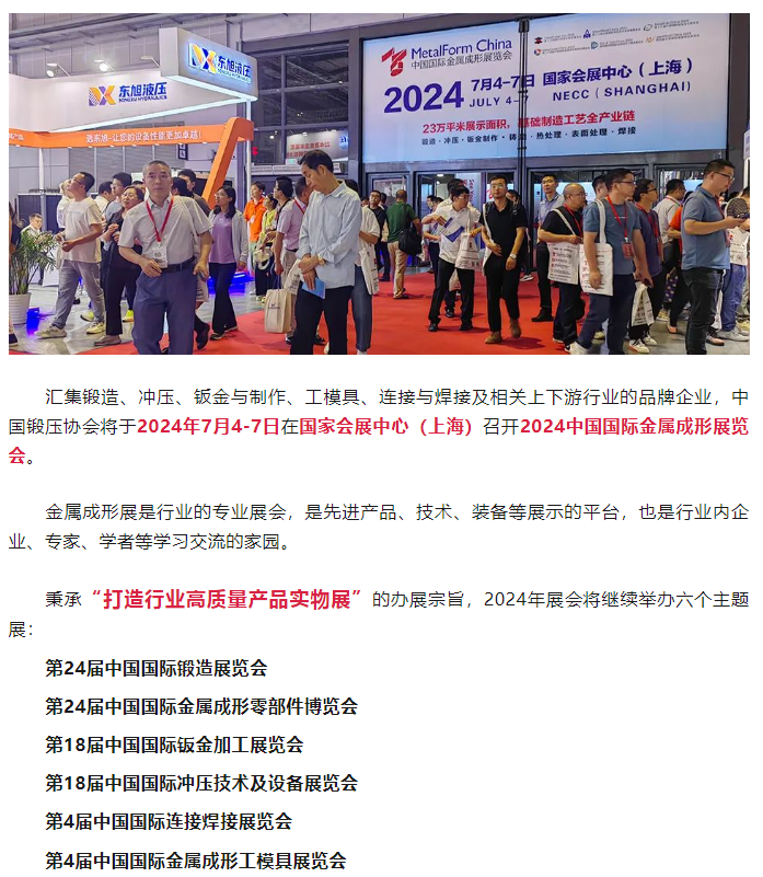 7月4-7日再聚上海|2024金属成形精品实物展,与业界精英共同探索行业发展新趋势!