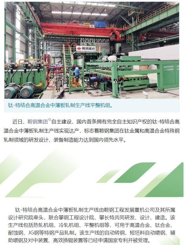 国内首条钛-特结合高温合金中薄板轧制生产线达产!