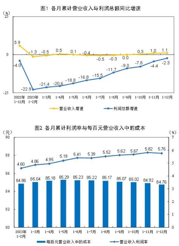 【数据发布】2023年全国规模以上工业企业利润下降2.3%