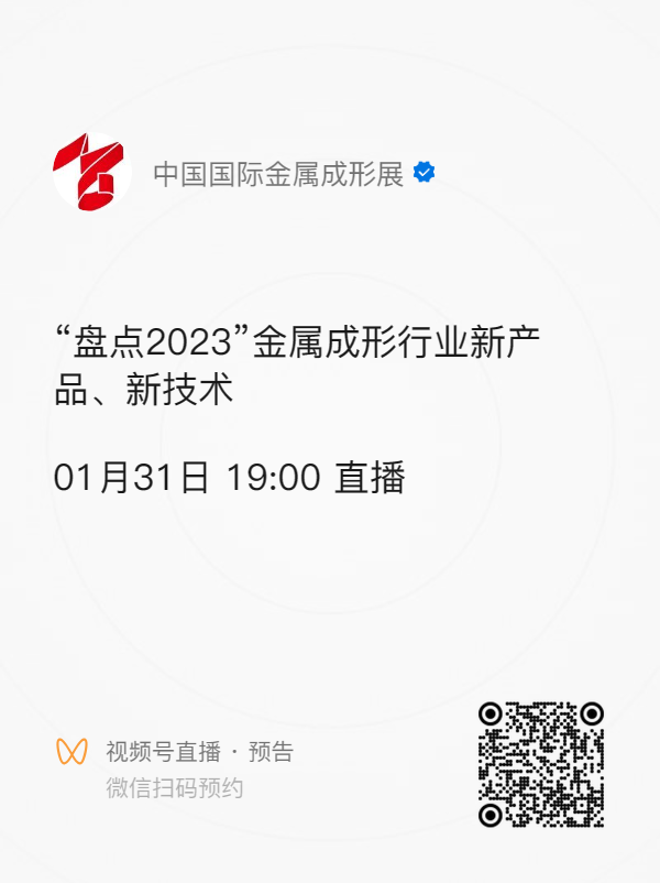 今晚七点,关注视频号“中国国际金属成形展” 参与直播,抽取百余份惊喜大奖