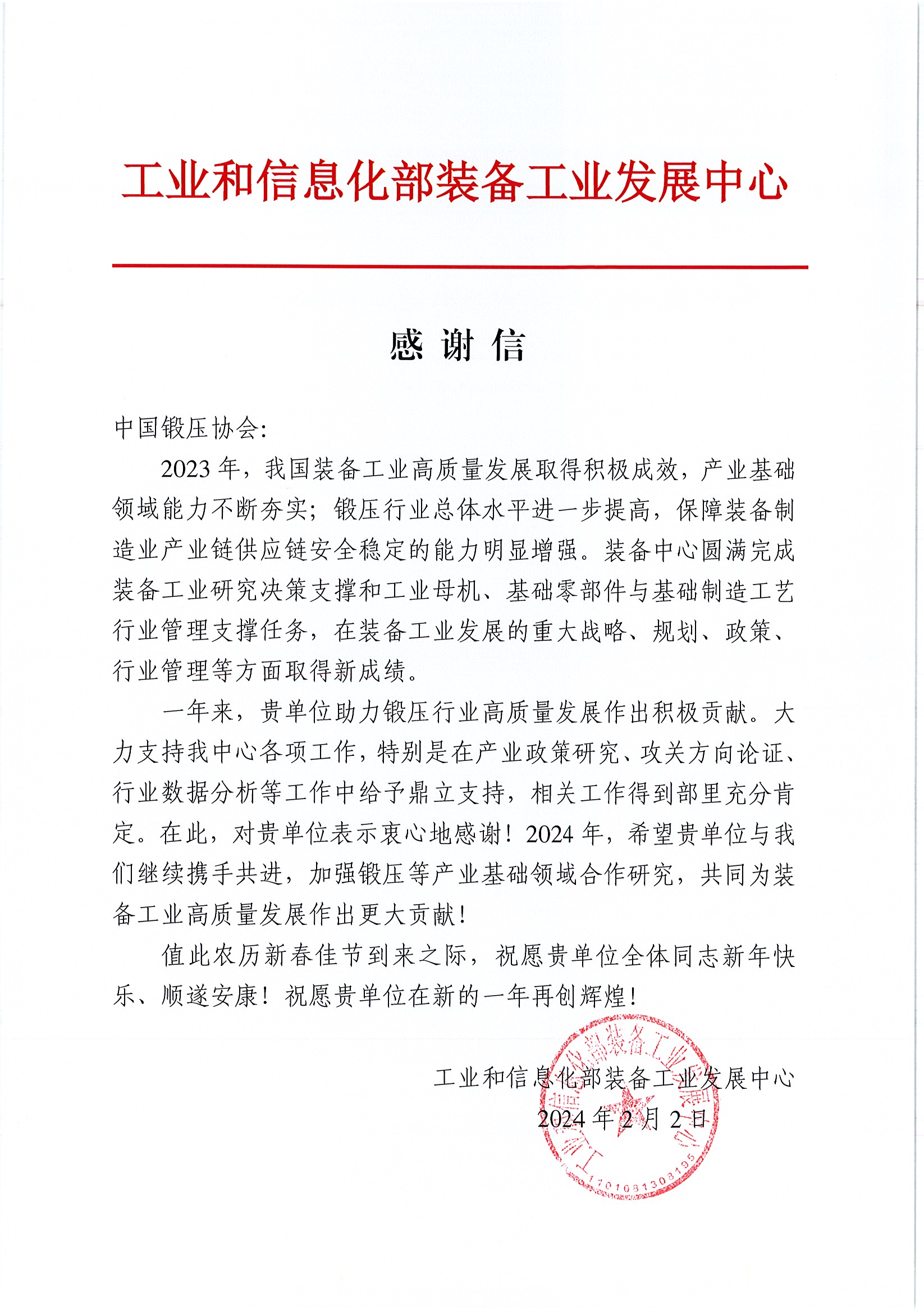 喜报!工信部、装备中心、中国一重等单位纷纷向新利18全网站手机下载 发来感谢信!