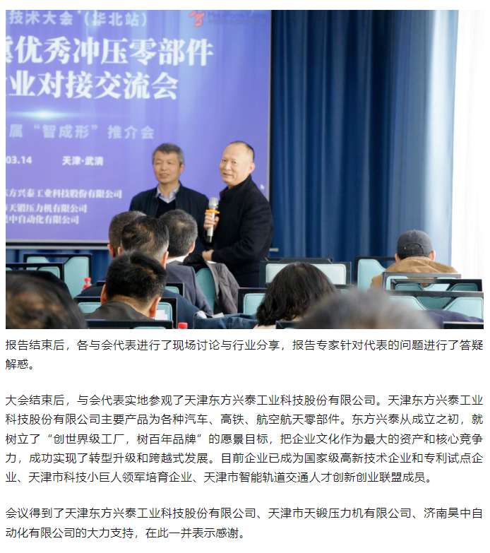 促进区域产业合作共赢--2024京津冀优秀冲压零部件及模具企业对接交流会于天津武清顺利召开
