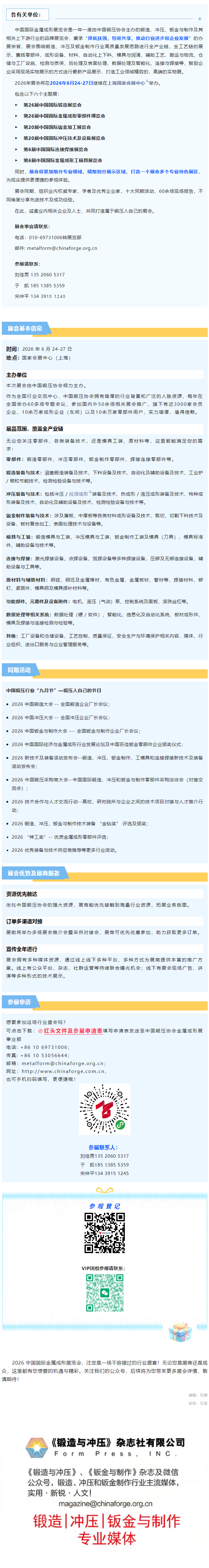 官宣!2026 中国国际金属成形展6月24日上海启幕